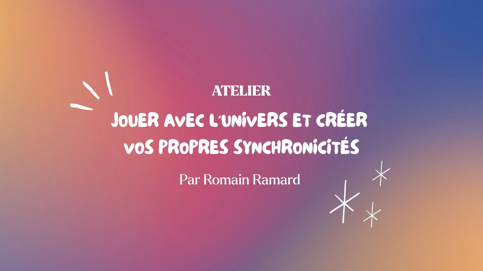 Vous le savez, l’Univers est joueur… Alors, êtes-vous prêt à devenir le créateur de votre destin ? Cet atelier est ouvert à tous, que vous soyez débutant ou déjà familiarisé avec certaines notions.